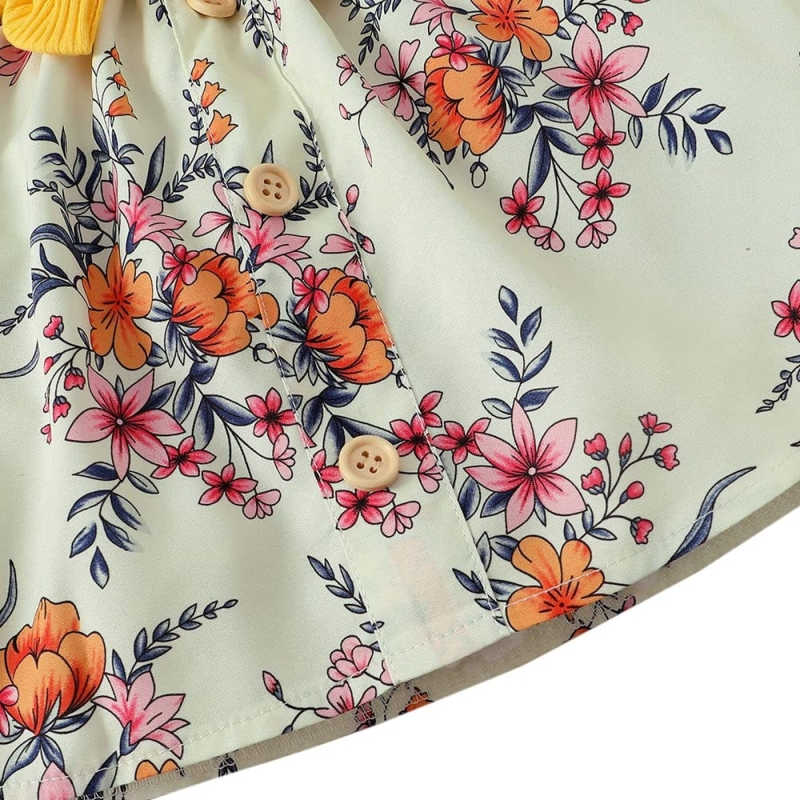 الحجلة بنات القطن طباعة الأزهار Onesie وتنورة مجموعة مع عقال في اللون الأصفر