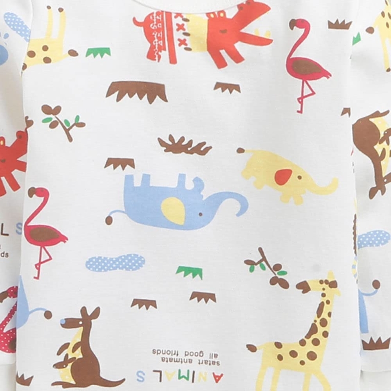 Hopscotch Boys Cotton Animal Print Top and Pajama Set in White Colour