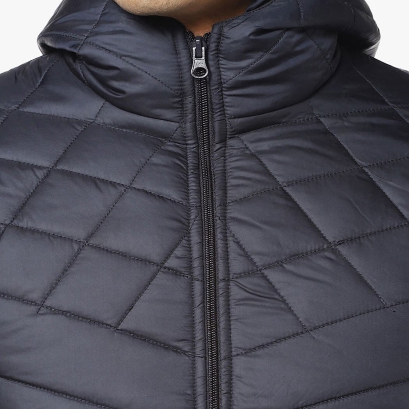 Men Quilted Hooded Jacket with Insert Pockets