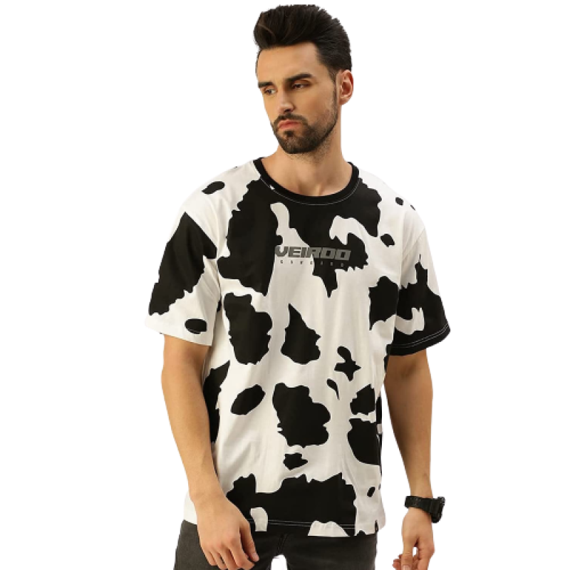 Veirdo 100% Cotton Oversize Drop Shoulder Loose Fit Round Neck Half Sleeve Animal Printed T-Shirt for Men/Boys