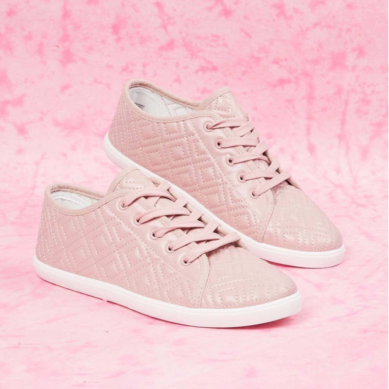 Women Pink Quilted PU Sneakers