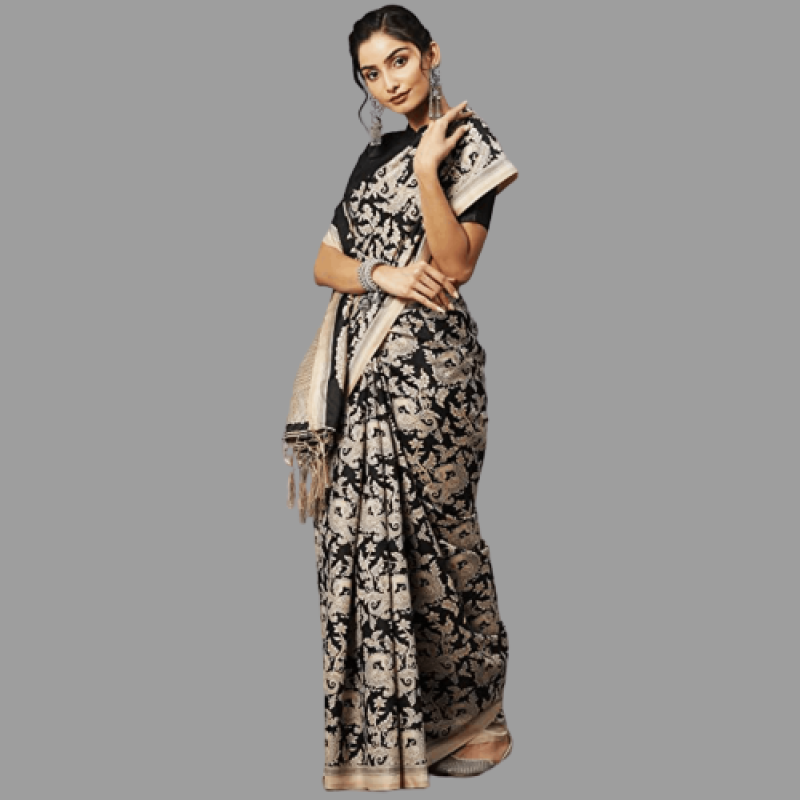 AKHILAM المرأة بهاجالبوري الحرير متقلب المطبوعة تانت ساري مع قطعة بلوزة غير مخيط