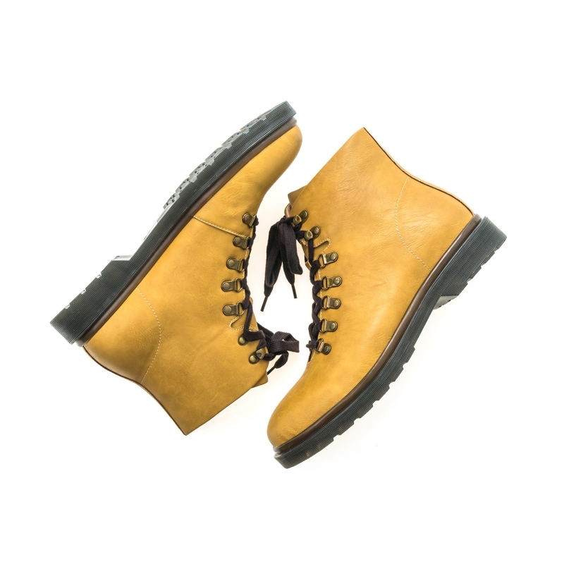 زوج من الأحذية ذات الكعب البني ، لديه الكاحل العادي والأربطة
