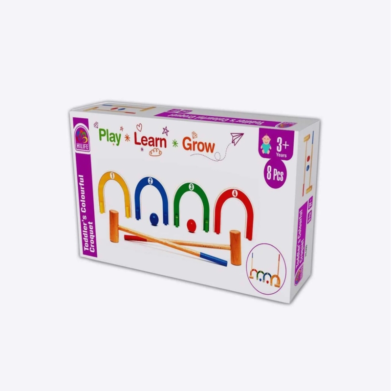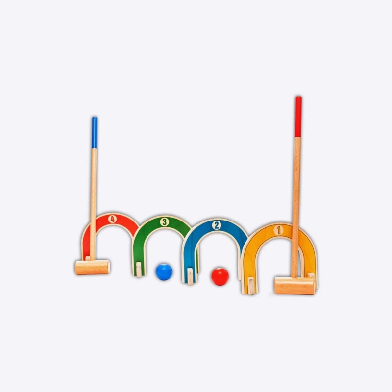 طقم الكروكيه الملون المكون من 8 قطع مصنوع من مواد غير سامة ومختبرة للسلامة وصديقة للأطفال.