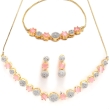 • Gold Plated Red & White Diamond Studded Necklace With Earring Bracelet and Ring Combo Jewellery Set
