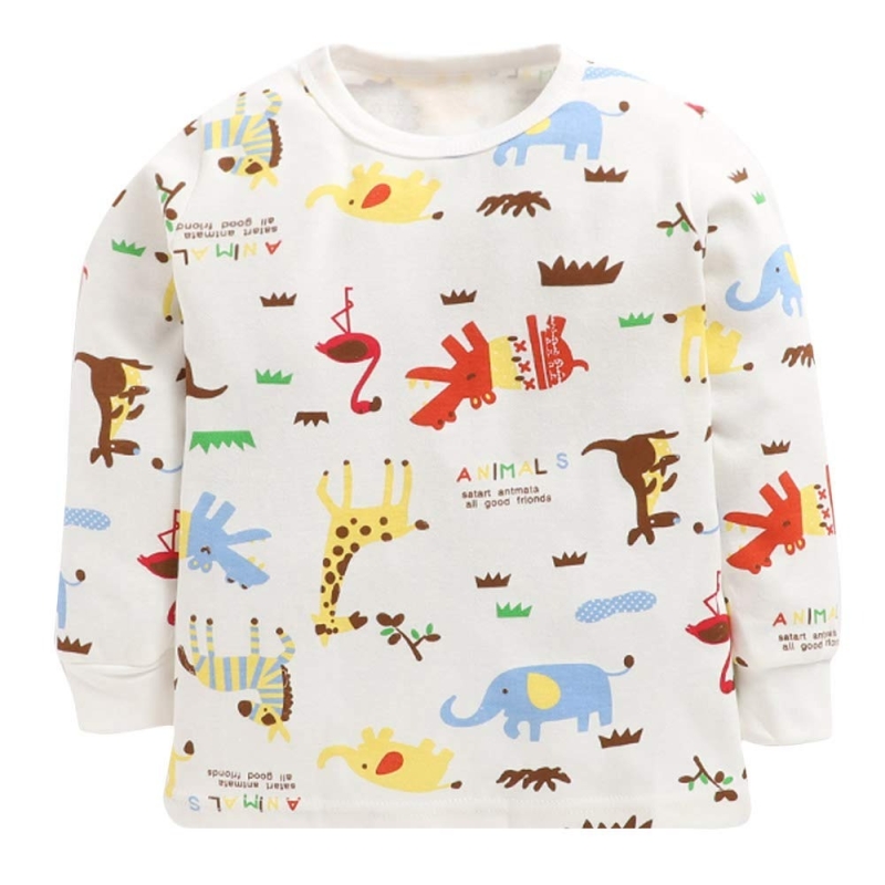 Hopscotch Boys Cotton Animal Print Top and Pajama Set in White Colour