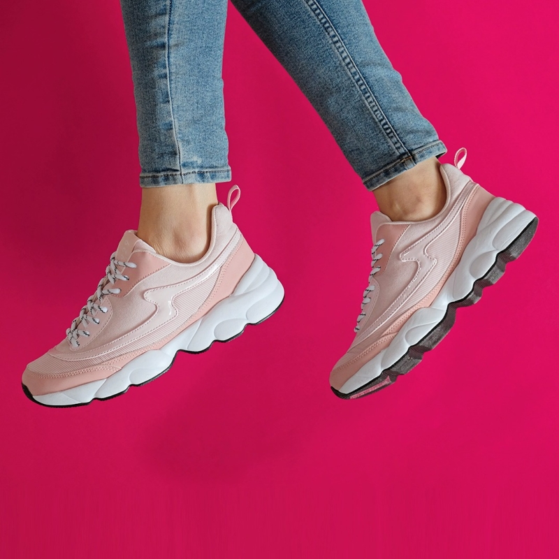 • A pair of Pink walking shoes, has regular Styling, lace-ups detail